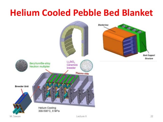 When lithtum atoms are exposed to neutrons they break apart, yielding helium and tritium atoms. The neutrons must have a low enough speed (be "thermal"), and the graphite serves the purpose to slow them down. In this process the graphite is in turn heated up by the neutrons. The purpose of the addition of the multiplier to the blanket is to compensate for neutron losses. Ultimately, after having penetrated the blanket the neutrons are absorbed in a shield composed of steel and boron carbide. On their way through blanket and shield the neutrons will change the matter from inactive to highly radioactive.Construction of Blanket and Shield