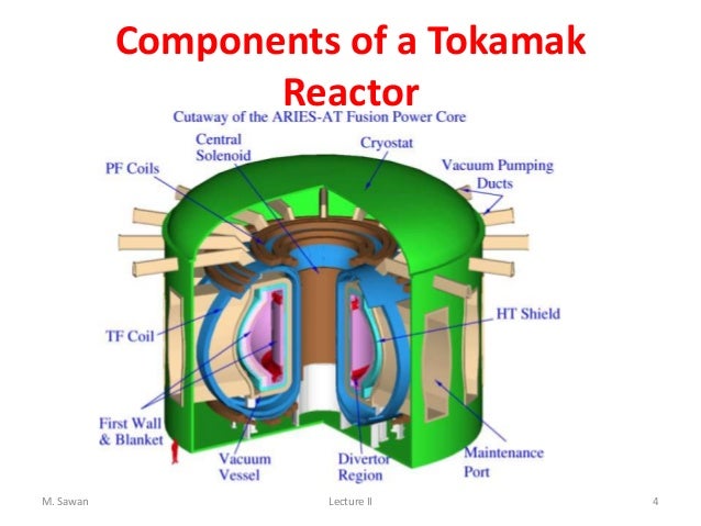 In Tokamaks the plasma is confined by magnetic forces to a horizontal torus. In Fig. 1 one can see the right half of a vertical cross section through the torus and its surrounding parts. The figure shows the first wall, blanket and shield. Through the openings in the blanket the plasma will be heated. The torus is built of an array of wedge-shaped sectors, one of which is shown in Fig. 2.