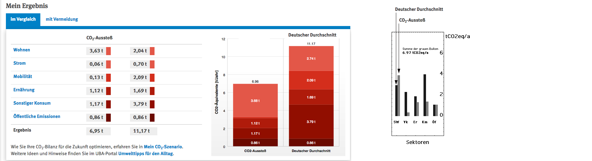 - der CO2-Rechner des Umweltbundesamts in Form unserer aktuellen Emissionen in unseren privaten Sektoren.